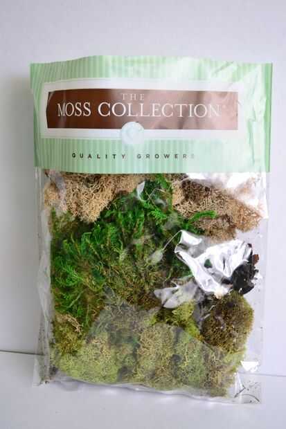 Compré algunos musgo decorativo y añadido a las esquinas del soporte de exhibición para vestir para arriba.