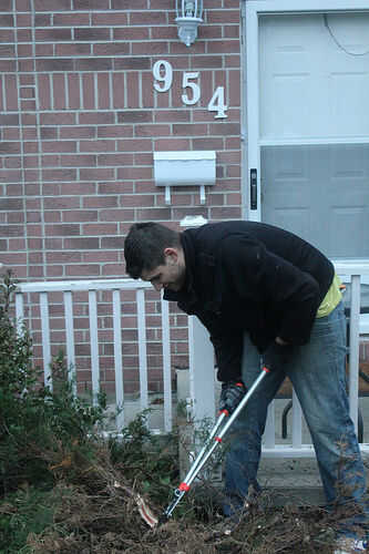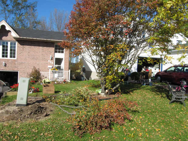también usé cajas de cartón aplanadas para mantener el césped y suciedad en así era más fácil de limpiar y era capaz de reutilizar mucha suciedad sin perder en la hierba pero una lona funcionaría igual de bien.