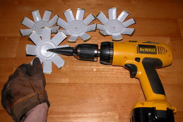 Paso 5: Usar guantes y gafas, taladro a través del centro de cada uno puede.