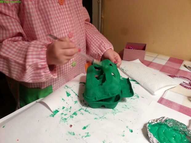 Tienes que pintar la caja de huevos para dar más sensación de jardín portátil.