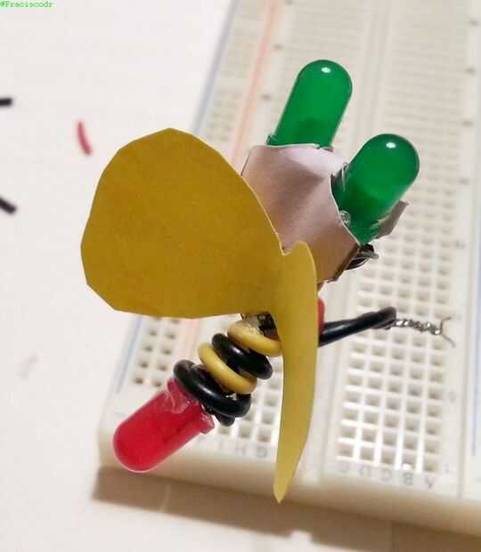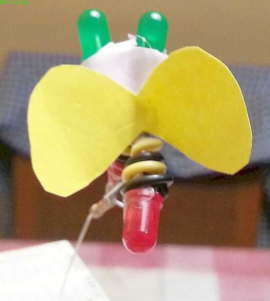 - Hacer la forma de la luciérnaga con tres LEDs y viento juntos los tres pares de cables.