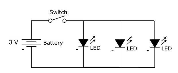 - Conecte los otros tres cables de los LEDs al otro lado del interruptor.