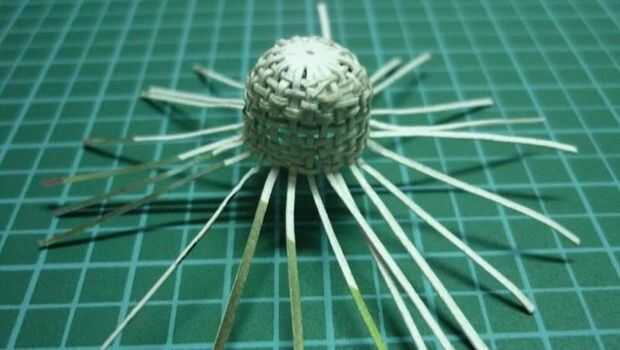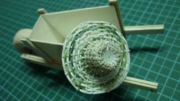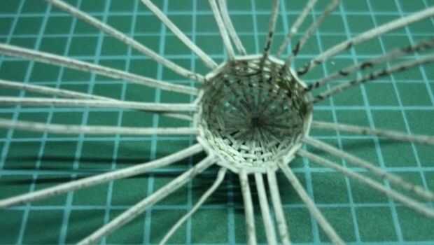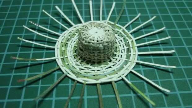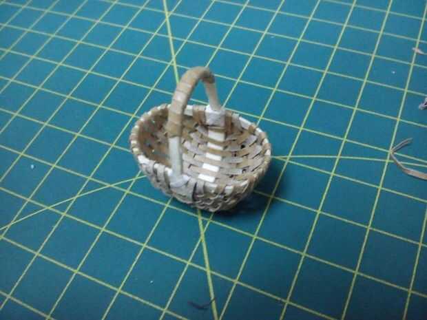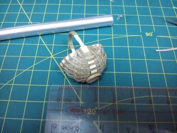 Corté algunas cadenas de papel (unos 0,5 mm de ancho) para hacer estas 2 cosas. Para la cesta, hacen la "Cruz (como la letra t)" la trama del capítulo la cadena de papel como la demostración de los cuadros.
