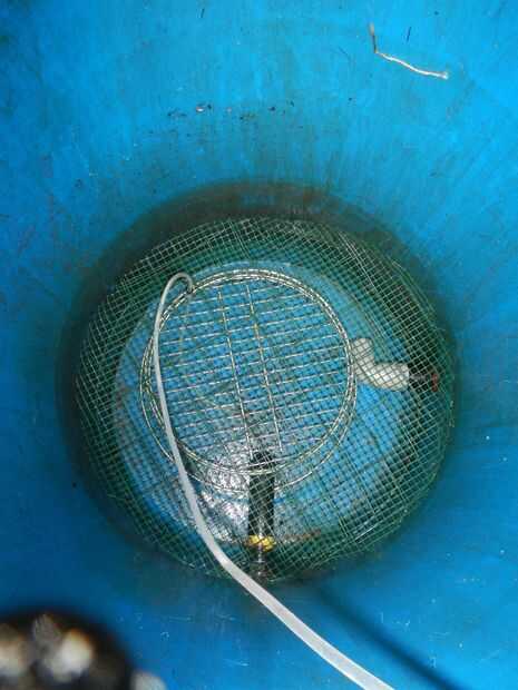 Para oxigenar el agua pongo las piedras de aire en el tanque de pescados y el biofiltro y que conectado a un pequeño compresor barato 12vdc y añadí una bomba de circulación.