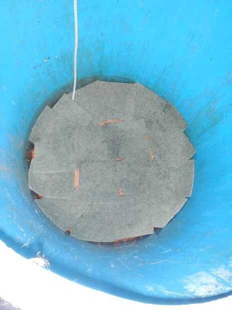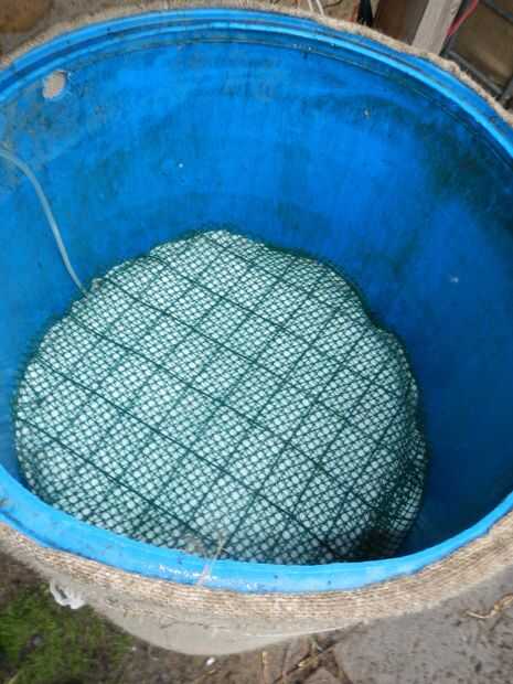 El filtro de barril se hace con varias capas de fibra de coco y fieltro y una capa de arcilla expandida.