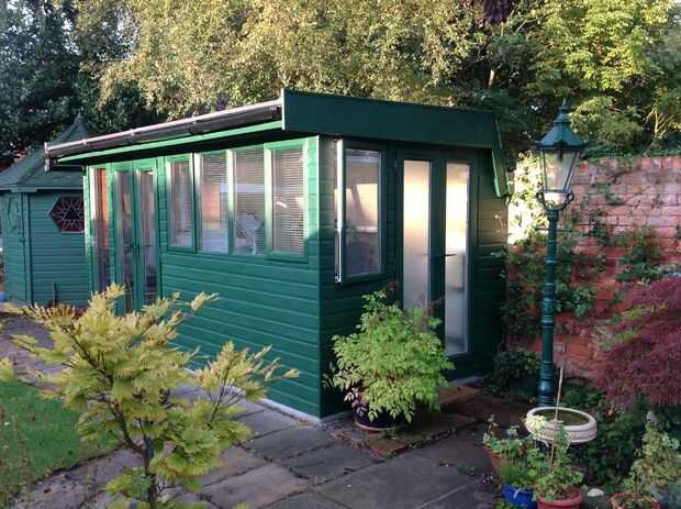 con muy poco espacio para un taller jardín que me decidí a hacer uno que dobla lejos.El toldo, y darme la cubierta de la lluvia en el taller también da la familia y en algún lugar para sentarse al aire libre.  La situación de cobertura y esquina del