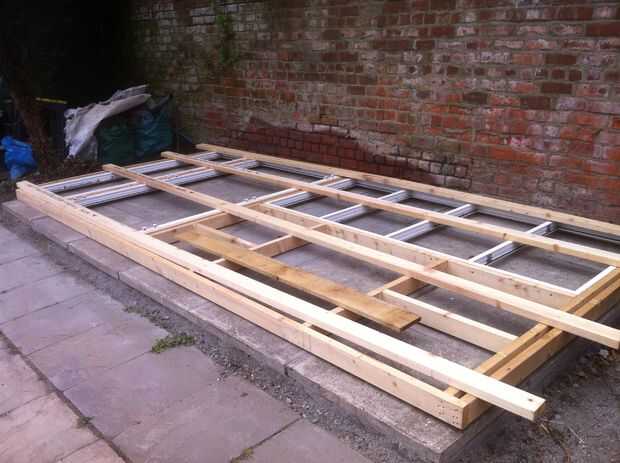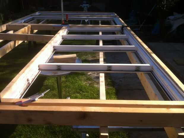El tipo de madera que utilicé era madera de bastante baja calidad conveniente para el entramado o estructura interna. Compré una madera de buena calidad conservante y pre – tratamiento todas las longitudes de corte antes de fijar. Utilicé una pistola de clavos para sujetar la madera a madera y de alta calidad tornillos para madera para fijar los marcos de PVC a la estructura de madera.