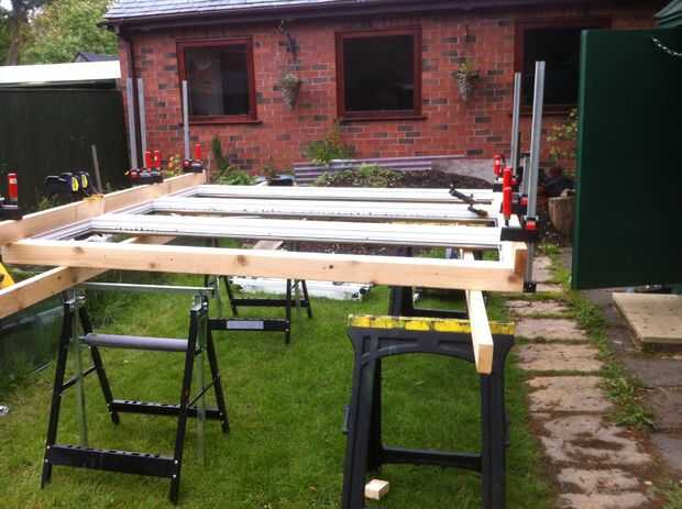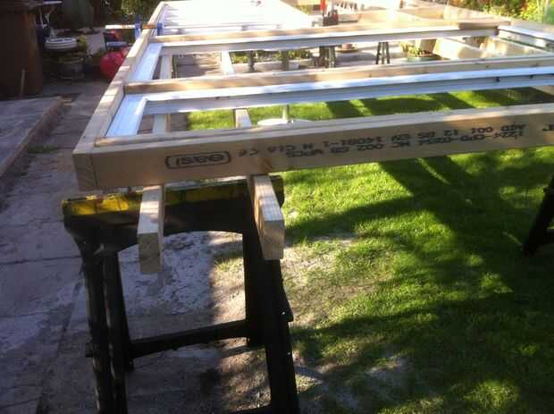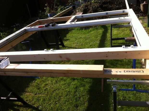 Los marcos de extremo necesitan pensamiento cuidadoso, uno para permitir la posterior canalones para acomodar y dos para asegurarse de que la pared contiguas no toma ningún tipo de estrés. Sólo un muro del jardín y no carga. Asegurándose de que el nuevo edificio se construye de manera independiente y sólo contigua a la pared no con si por fuerza debe conservar la integridad. En todos los elementos del diseño de esta versión que estoy tratando de tener en cuenta mi punto de vista de vecinos y asegurarse de que hay un mínimo impacto visual y estructuralmente. He considerado varias formas de construir la pequeña parte trasera frente a la sección de la azotea. Los elementos más difíciles de examinar con los bastidores laterales son el hecho de que los marcos de PVC son más altos que la pared divisoria de jardín que el edificio estará junto a. Para ello he utilizado dos techo diferentes ángulos y longitudes. Con la parte trasera frente a la sección de la azotea está escalonado no vistas o arrojar luz sobre la propiedad vecina Hacer los canalones inferior la pared adyacente, mientras que manteniendo propiedades impermeables también planteó muchos desafíos. Una vez que la madera de la cresta, canalones piezas y tablero de facia había sido entregada podría utilizar éstos para calcular los ángulos necesarios para acomodar el diseño de la trasera del techo. El montante principal puntales mira como tienen que ser unos 25 grados y esto permitiría la viga del caballete para sentarse encima de los marcos de madera con los marcos de puerta UPVC. Esto debería hacer que la cubierta delantera caída en cerca de 2-3 grados. Un mock up de tamaño completo se necesita todavía para confirmar estos primeros cálculos de guess.