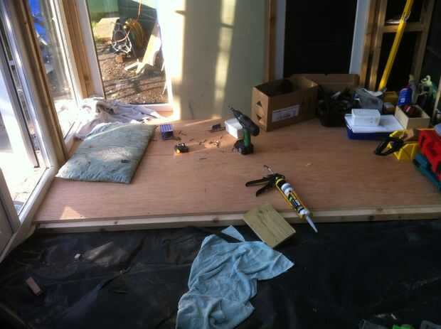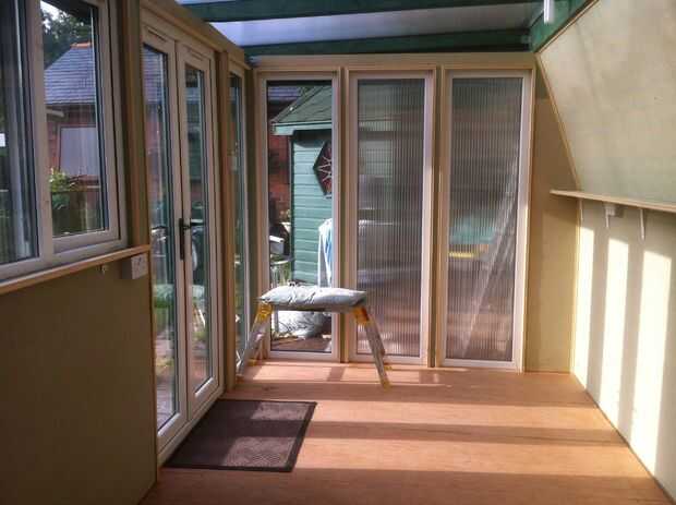 La construcción del piso es madera contrachapada impermeable de 18 mm y también consiguió el mismo DPC y aislamiento, otra vez teniendo cuidado de no para perforar el DPC. Finalmente cristal vuelva a los marcos de PVC (donde demasiado pesado con el vidrio en su lugar. Dos paneles habían sido roto por los constructores cuando elimina de su ubicación original. Yo no podía permitirse el lujo de nuevas unidades de vidriadas doble en £80 así que compré dos hojas de policarbonato grueso de una pulgada en £16. La mayor parte del costo de esta construcción fue en el techo de hojas, la alfombra y las persianas. He añadido alguna película de privacidad y una pantalla de la mosca que tenía de repuesto. Maltratadas por los bordes de la base con una mezcla dura de arena afilada y cemento reunir la dpc, el que está en la base y el de detrás el revestimiento exterior. Esto se ve como si se mantiene la barrera de agua a los pies del edificio ok – el tiempo lo dirá.