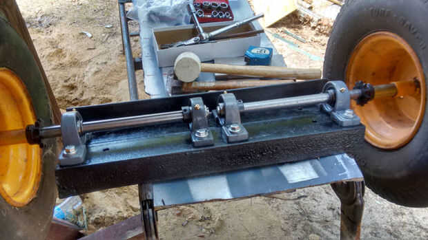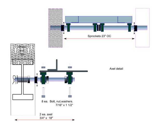 He utilizado 3/4" llaves ejes con piñones convenientes con relación 1:1 y cadena de rodillos #40. (Más adelante puedo aumentar el tamaño de la rueda de entrada para obtener más velocidad de la tierra)