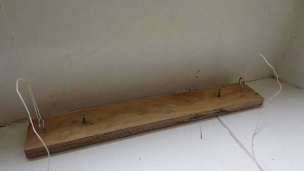 - una vez has roscado todos los titulares en usted pueden ahora Conecte los otros extremos de la dos cuerda, gancho de la placa base (estrecho) hasta el final de las cuerdas y fijarlo en a lugar.- no desea que la cuerda sea muy tenso, que puede ajustar la tensión de la cuerda aflojando los ganchos a la Junta en el tablero estrecho. por esta razón hicimos la cuerda un poco más corta que la necesaria.