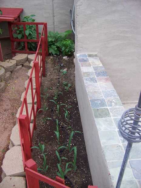 También planté cebollines y algunos puerros entre el maíz, que se supone para ayudar a mantener los bichos lejos.