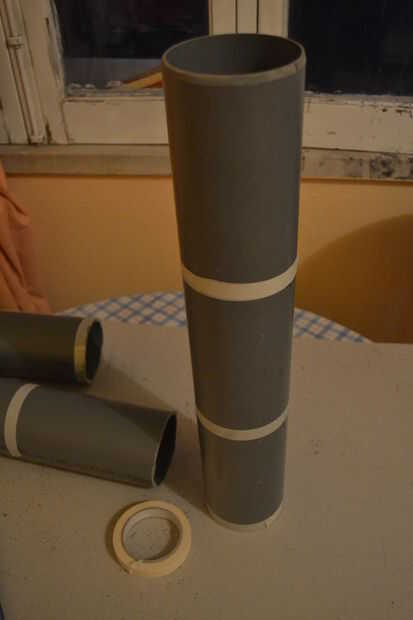 Marcos 20 y 40 cm en el tubo de pvc con la cinta de papel.