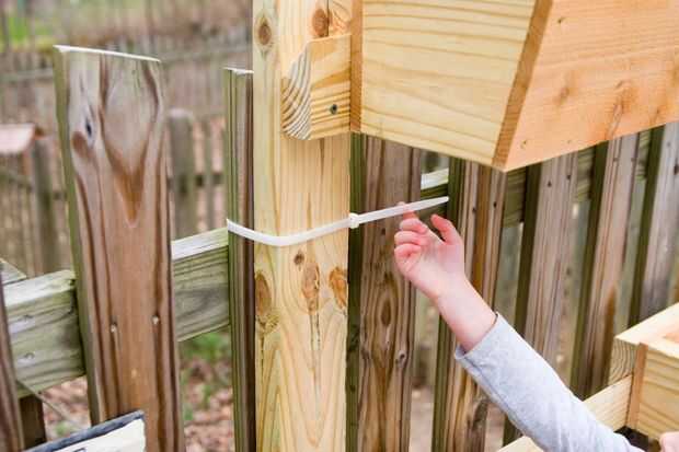 Dado que la mayor parte del peso será hacia abajo, los lazos zip deben ser un montón lo suficientemente fuertes como para sostenerlo para arriba. Esto también es bueno si usted no posee la estructura que se conecta, o si es una cadena de enlace cerca o algo.