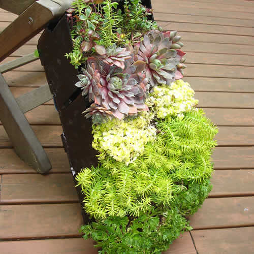 Antes de colgar tu jardín, es una buena idea dejar que las plantas a aclimatarse a su nueva vida en 90 grados. Apuntalar su jardín en un ángulo intermedio - digamos 45 grados. Algunos de los Seedums apenas parecían darse cuenta de su cambio de vida; otros inclinó un poco antes de girar hacia el cielo. Después de 3-4 días son suficientemente aclimatados a vivir verticalmente. ¡ Disfrute!