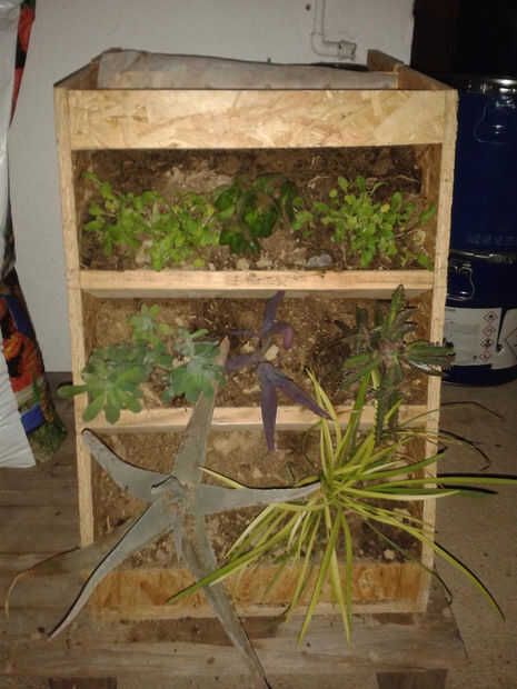 7) hecho! Ahora entrar en los ejes intermedios segundo como soportes y separadores. En nuestro caso el cuadro entero se divide en 3 partes, pero podemos optar para 2 o 4 separadores. A una vez sentado y seguro tales medios pueden añada el espaciador en la espalda al suelo, las rocas de la base para drenar el agua y posiblemente plantas mezcladas con otra tierra de cultivo.
