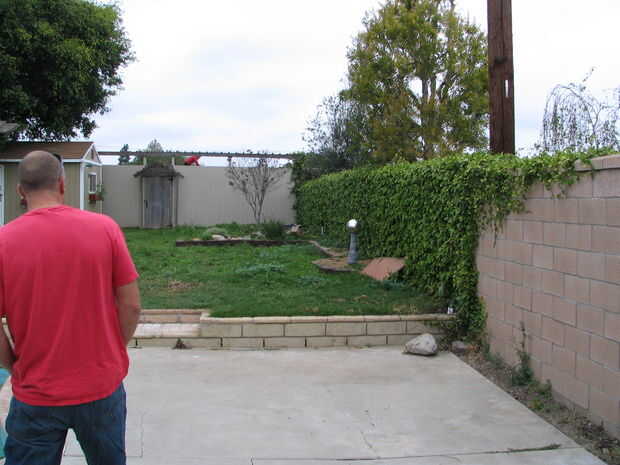 Es un poco difícil de ver, pero el dueño anterior puso en una cama de siembra y un pequeño estanque hacia la parte trasera por que bordean las zonas con piedra de muro de contención. El estanque parecía terrible y no estaba funcionando, así que todo fue tomado hacia fuera.