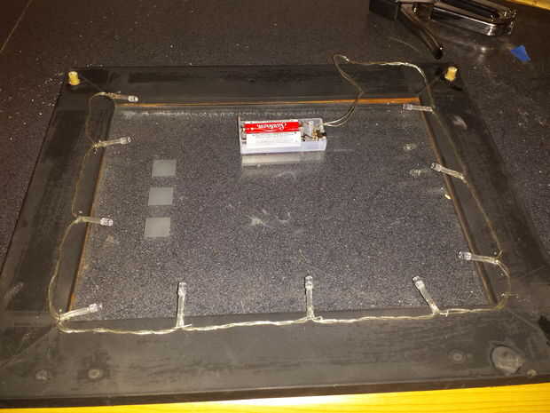 Una vez que todo esté seco retirar la cinta y el periódico. Ahora es tiempo de elegir el lado que desee mirar. Una vez que tengas Dale la vuelta a la parte inferior y salir de la pistola de grapas. Tengo mi led luces en el árbol del dólar por un dólar. Tenían las mariposas sobre ellas sólo tire de ellos y su listo para ir. Venden en varios otro color opciones así que utilizan el que mejor establece su estado de ánimo relajante. Grapa las luces led en la parte inferior de la estructura tenga cuidado de no pinchar los cables. Asegúrese de que el led está colgando sobre el vidrio. Dale la luz más y presto