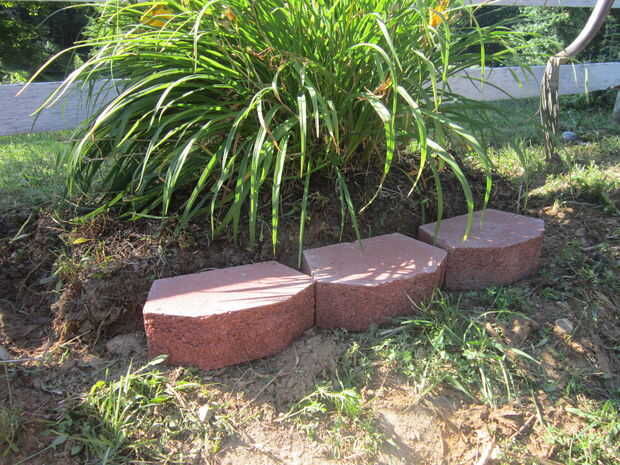 Comenzando en el medio frente de la cama de flor, coloque uno de hormigón construcción de piedras. Asegúrese de que la piedra se asienta firmemente en el suelo y no se balancee. Deberá dar un paso en la piedra para que su peso ayuda a apoyarlo. No golpear la piedra con cualquier objeto, ya que esto puede causar agrietamiento o rotura.