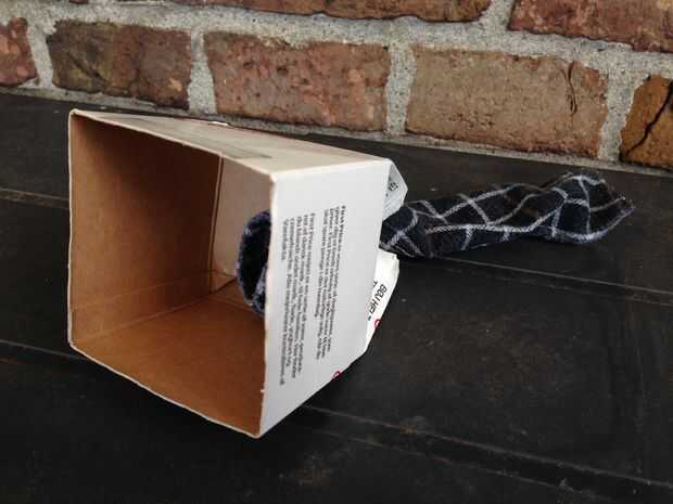 Inserte la mecha en la parte superior de la caja y cerrarla. Un poco es estar dentro, pero la parte en el exterior debe ser lo suficientemente largos para llegar a la parte inferior de la caja de cartón. Es fácil de ajustar esto más adelante.