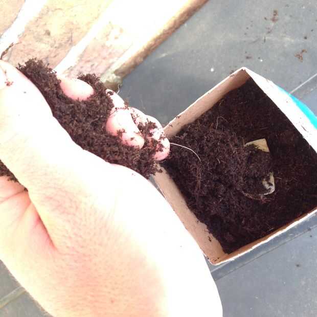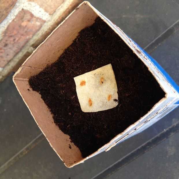 En este ejemplo yo estoy plantando semillas de tomate. Las semillas de un tomate se ha secado en un pedazo de toalla de papel. Corté a cuatro para asegurarse que al menos una planta sana. Agregue la mezcla para macetas hasta unos 2,5 cm (1 pulgada) de la parte superior. Ponga en semillas y agregue más mezcla hasta apenas cubriendo las semillas.