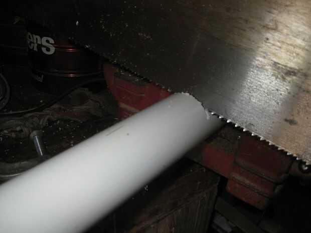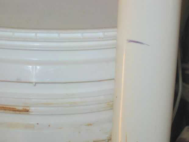 Anidar los cubos y soporte el tubo de PVC vertical al lado de ellos. En el borde de la cubeta superior, marque la tubería de PVC y corte a la longitud.