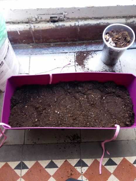 Es hora de enterrarlo para arriba! Suavemente pero con firmeza poner el suelo encima y todo alrededor de la botella. Planta tus semillas favoritas, luego enterrarlos y dejar que la diversión comience. Agua la tapa solo un poco para que el suelo es húmedo.