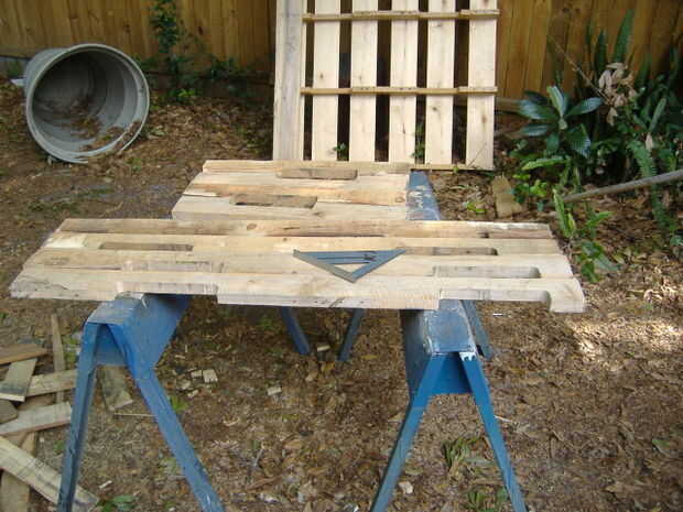 Hace aproximadamente un año, me dieron varias paletas industriales de la fuerza de 2x6s. Después de renunciar a tratar de separar las secciones largas, usé una sierra circular para cortar lo que considero el material utilizable. Me quedé con cuarenta