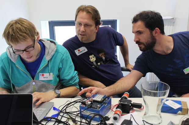 Conectado un escudo para el cableado fácil y vinculó los sensores mencionados a la Junta. En c ++ un programa sencillo, consultados los datos del sensor y envía a un servidor en la nube.