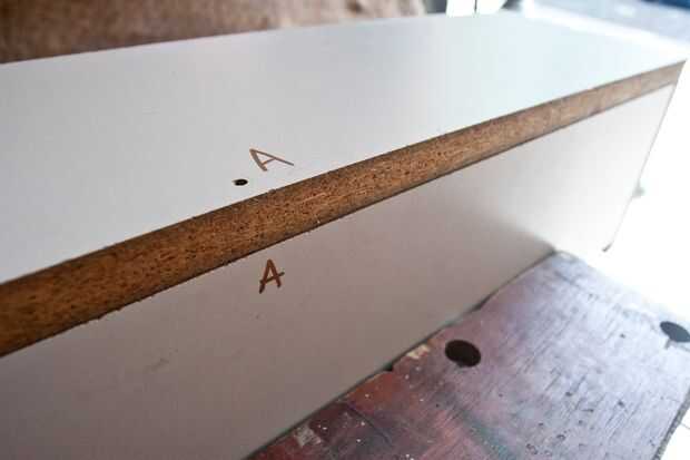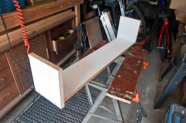 Ahora viene la diversión parte de realmente hacer esta cosa! Comencé realizando cortes al hilo de las tablas de melamina a medida con mi sierra de mesa. Puedes ver en uno de los cuadros que tenía que improvisar que una mesa vio trineo para hacer los cortes horizontales. Hicieron los cortes con una sierra circular, pero quería asegurarse de que todo se cortan en ángulo recto.