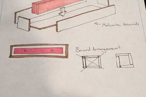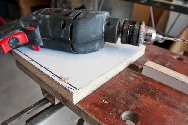 Luego arregla los tableros en la configuración que se muestra arriba y piloto-agujeros para tornillos varios perforados. Esto asegura que los tornillos no causan la Junta dividida/deformar. Los tornillos se utilizan principalmente para alinear todo. Proporcionan una estructura, pero por el amor de desmontaje fácil (una vez que el concreto se echa), evité usar demasiados.