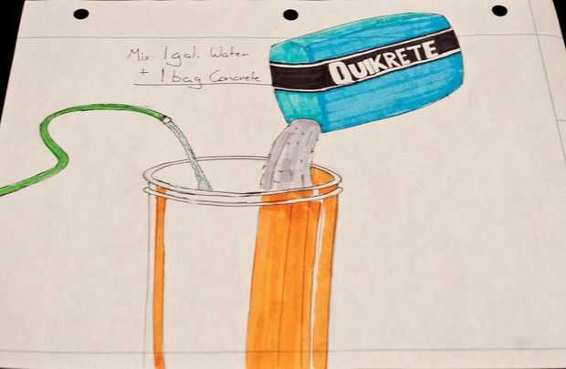 Calcular cuánto concreto que necesitará para el plantador y vierta la cantidad de hormigón seco en el cubo de 5 galones. Yo comentar la cantidad necesitaba y agregó un poco más para la buena medida. Usé un poco menos de la mitad de una bolsa (aproximadamente 35 libras de una bolsa de 80 libras) de mi jardinera.