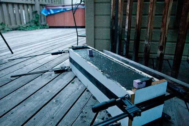 Después de llenar el formulario a la parte superior (si has hecho tus matemáticas derecho, su jardinera tendrá una buena base gruesa de 1"- 1.5"), luego use sus lijadora de mano/martillo/puños que vibre o golpee ligeramente las paredes de la forma. Usted comenzará a ver las burbujas de aire levantan a la superficie y el pop. Continúe haciendo esto hasta que las burbujas dejen de levantamiento a la superficie. Esto reducirá al mínimo el número de huecos y agujeros en la superficie de la maceta que se ha endurecido el hormigón.