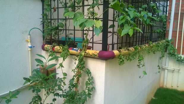 un fácil de hacer, barato, tiempo resistente enrejado que puede contener dos jardineras estándar.Los cuadros con las flores son mi esposa y yo hicimos el verano pasado. Nos gusta de la gloria de la mañana así que es perfecto para ellos, pueden planta