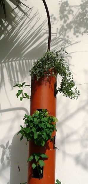 -Uno, como yo, es insertar una tubería de riego por goteo (como se muestra en la foto) de la parte superior o inferior (dependiendo de sus necesidades) en el tubo.