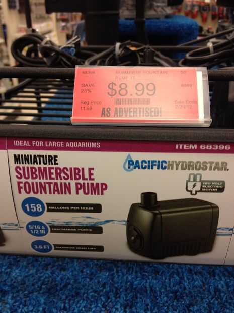 Una nota sobre la bomba de agua... Bombas de agua son clasificadas en base a qué tan alto pueden levantar el agua y cuántos galones por hora que pueden bombear. Esta bomba de agua sólo tendrá que levantar el agua unas cuantas pulgadas y la voluntad no necesaria para un montón de galones de agua. La bomba de agua más pequeña que usted puede encontrar probablemente será suficiente.