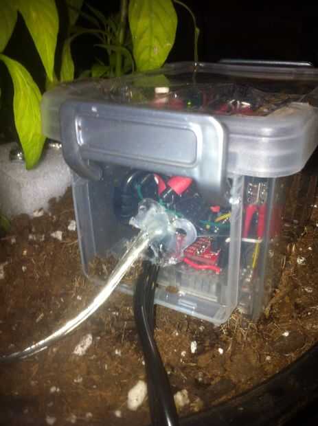 Os adjunto el solenoide a la jardinera, cortando toda la parte superior de la maceta y usando una brida para asegurar el solenoide. Utiliza el mismo cable y se conecta rápido para conectar el solenoide a la fuente de alimentación y Arduino.