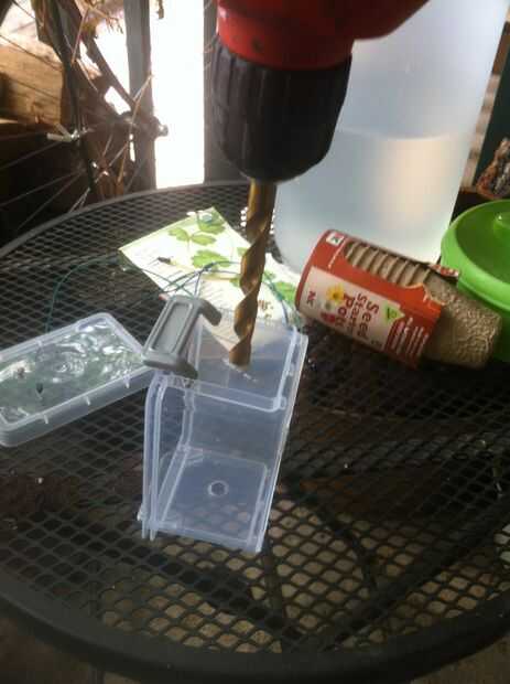 Taladré agujeros en ambos lados de la caja. Estos son dar cabida a la fuentes de alimentación, el solenoide y el sensor de humedad del suelo. Usé pegamento caliente para sellar los agujeros.
