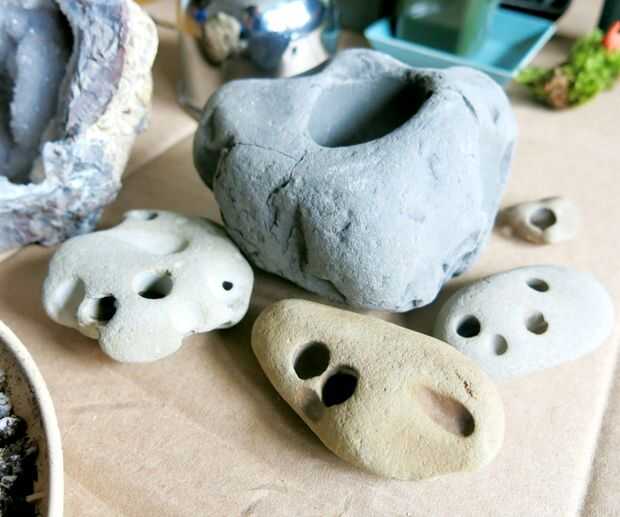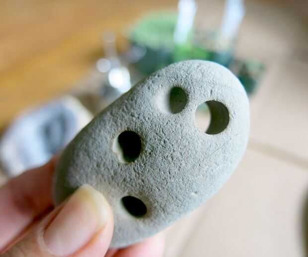 Mi novio Mark y yo estaban en Bolinas, California y había encontrado todas estas rocas de la playa con los agujeros en ellos. (Puntuación!) Son lo que provocó la idea de hacer plantaciones bitty de itty - pero podría utilizar cualquier pequeño recipiente con un agujero de drenaje. Aquí le damos algunas otras ideas: