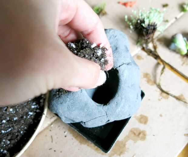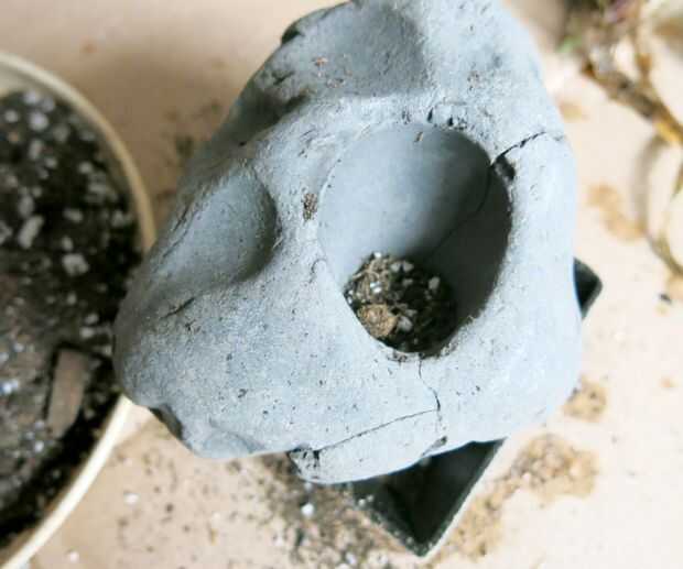 2. Espolvorear una pequeña capa de suciedad en la parte inferior de la cavidad.