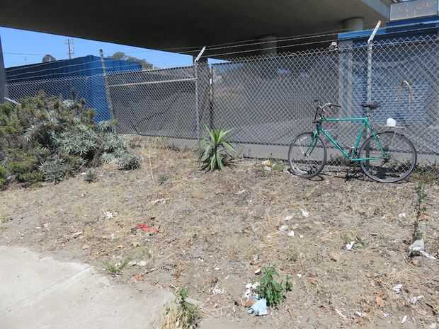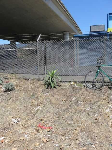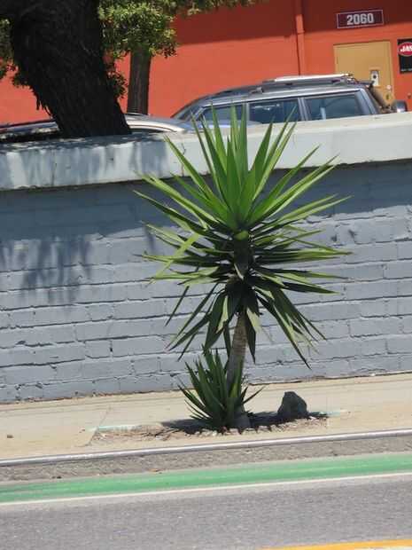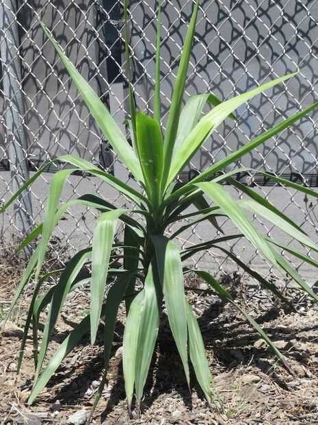 Aquí hay un par de árboles yuca. Están en una sección industrial de mi ciudad. Yo la bicicleta les y agua con una jarra de agua.