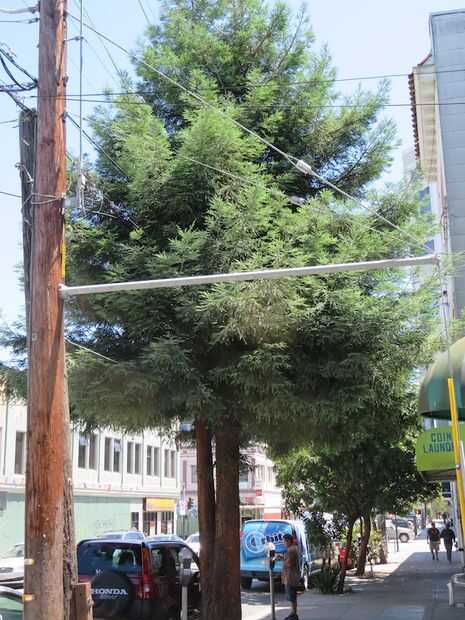 Aquí hay 2 fotos de una secuoya que es cerca de 15 años. Alguien nuevo se movió en la casa que está delante. Han sido recortar sus ramas inferiores y hasta limpieza de graffiti pintado en su tronco? También, un pino, que un vecino me dio cuando se mudó lejos, él lo tenía en una maceta en su casa. Era cerca de 4 pies de altura y raíz muy limitado y retraso en el crecimiento. Es alrededor de 20 años de edad y 40 pies de alto ahora. Es tan gran y majestuoso, que salir un tiro de enviándole una foto de él cada pocos años para hacerle ver cómo es su bebé.