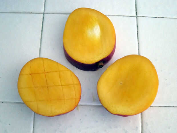También encontraron Mangos amarillos el 7 a 2 para un dólar y pensamiento que les trataría así. Un mango más pequeño y más suave (también llamado Mango de Manila).