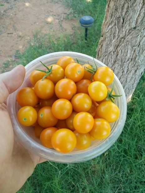 Así que aquí está el jardín cubierto y dos tazas de tomates cherry amarillos. Coseché esa cantidad dos veces a la semana por ese punto y se mantuvo hasta que el hielo llegó a principios de noviembre. Todavía había flores y tomates verdes en las vides para mantuvieron produciendo durante un buen rato.