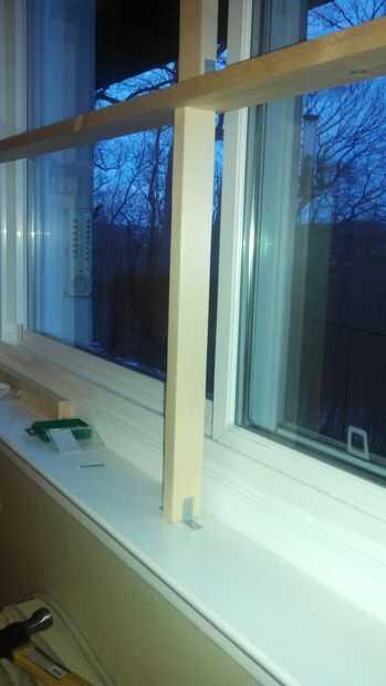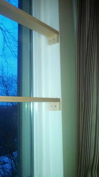 Mi alféizar de la ventana es muy estrecho. Usé dos 2 1/2" de ancho y 3/4" espesor planchas con apoyo adicional en el medio. La construcción es muy simple: cada lado es clavado a los soportes (2 tornillos a la pared para cada uno).
