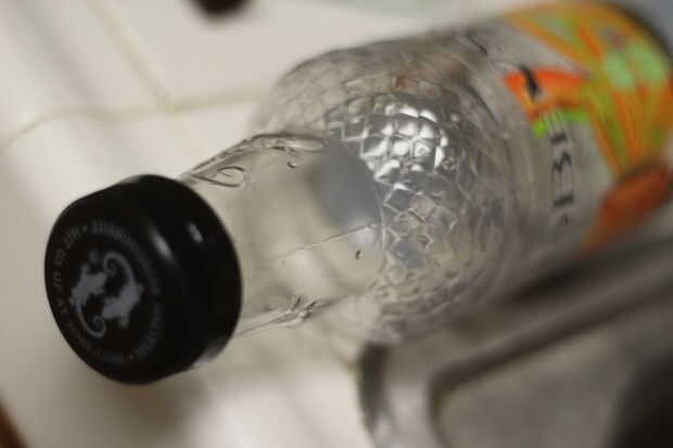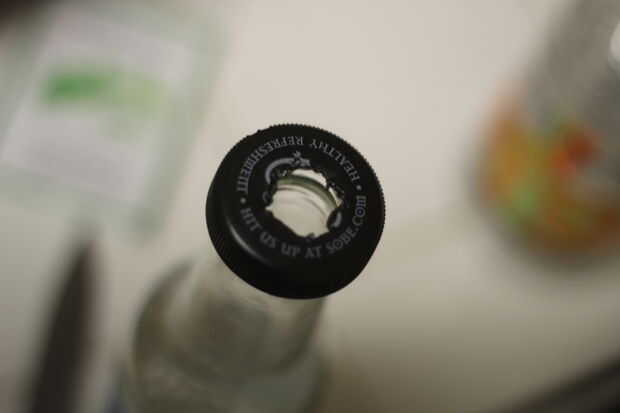 2. Tome su cápsula de plástico y colóquelo sobre la parte superior de la botella de vidrio.