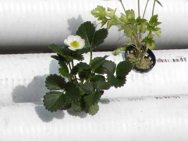 Cuando tenga suficiente raíz para llegar a la parte inferior del tubo (2"- 3") pongo la planta limpia en una ranura en una de 2" por 2" pieza de lana de roca que ha sido exprimida en agua limpia registro y entonces inserta en maceta de 2" con el agujero de corte en la parte inferior con las raíces colgando hasta alcanzar el flujo de nutrientes.