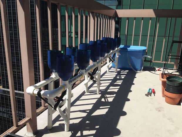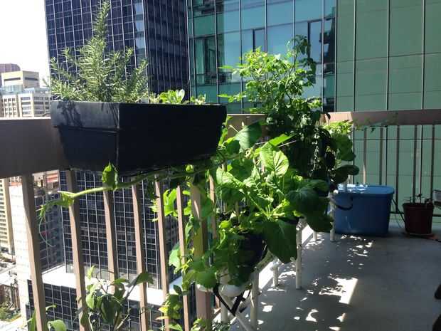 Tengo suerte de amor plantas, entender un poco acerca de la tecnología y cosas del edificio y tienen un balcón que se agradable, lleno de sol. Viviendo en la ciudad de Nueva York, jardinería es casi imposible así que tuve que hacer debe. He creado un diseño muy básico, pero modificado para requisitos particulares que cabría por parte de mi balcón. Este diseño se hizo exclusivamente para su uso exterior con luz natural, aunque fácilmente podría montar luces por encima de él en el interior.