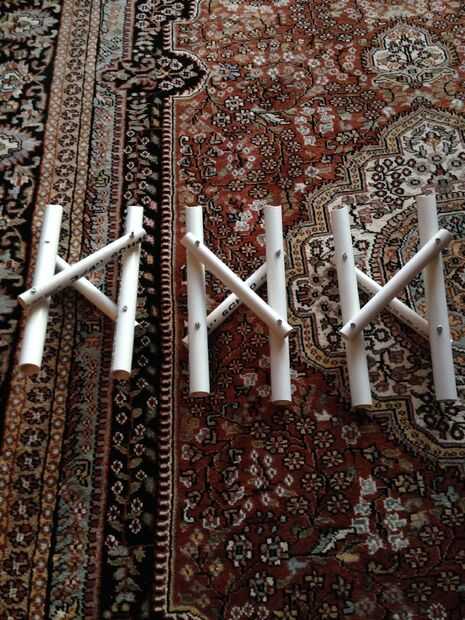 Si pudiera hacerlo otra vez, quisiera 3D impresión "Media Luna--> 1" PVC tubos adaptadores para la base de ajuste más seguridad en las patas sin necesidad de tanta Cruz-apoyar.