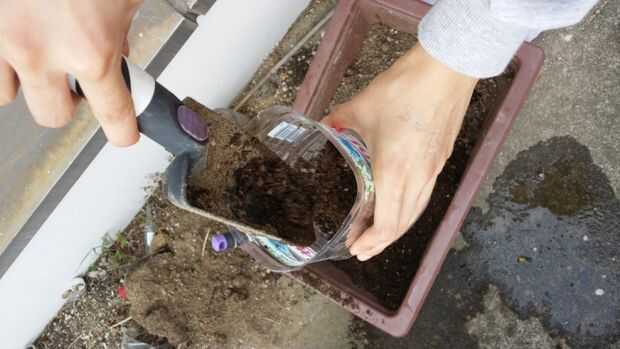 1 colocar un trozo de tierra en una parte superior de la botella.